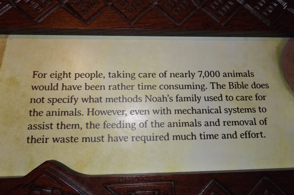Many of the questions that have been asked over the course of time are answered in displays inside the ark. How Noah and his crew cared for the animals. How they used the restroom. How they acquired fresh water.